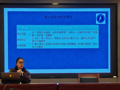 12月1日,学院组织全体工作室室长开展专项清洁培训。王荃老师系统解读了《工作室周四大扫除专项执行方案》,围绕“无堆积、无死角、无隐患”目标,对清洁内容与标准进行详细说明,涵盖物品整理、线路规整、消防通道维护等重点环节。培训强化了室长的统筹监督职责,并通过案例讲解与现场答疑,确保清洁标准人人明确、责任层层落实,为后续全员清洁奠定了扎实基础。