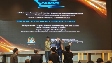 会议期间,朱仁庆教授代表江苏省造船工程学会参加了11th PAAMES国际常委会第三次会议,并正式提出在2029年由江苏造船工程学会主办13th PAAMES/AMEC 2029会议的申请。 AMEC(2025)学术交流环节,公司四名研究生分别作学术论文报告,其中一篇获最佳论文奖。